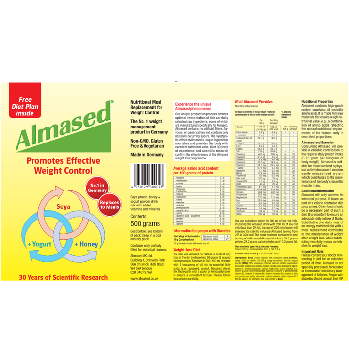 Almased Original is also gluten-free and suitable for diabetics and vegetarians.
