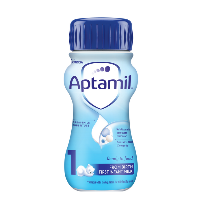 Aptamil First Milk 200ml RTF offers an unique blend of ingredients specially tailored to nutritionally support your baby at its first stage of development. Aptamil First Infant Milk From Birth is a nutritionally complete breastmilk substitute, allowing you the option of combination feeding. Ready to use in a handy screw cap bottle, it is perfectly practical, making feeding times easy and with less fuss.