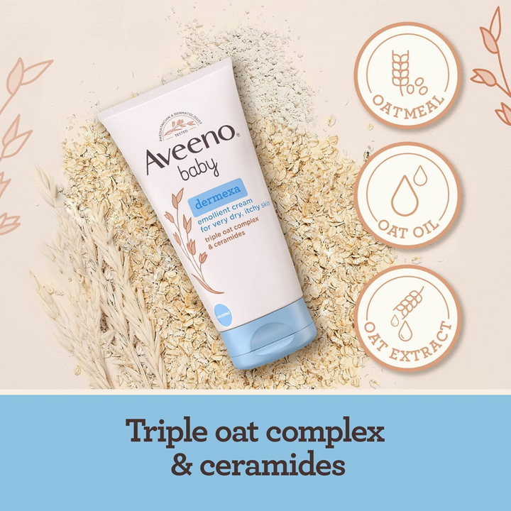 AVEENO Baby Dermexa™ Emollient Cream is specially formulated for babies with very dry, itchy skin who are more prone to regular irritation and itchiness. Enriched with ceramides, an essential component of the skin structure, the formula helps to strengthen the skin barrier function.
