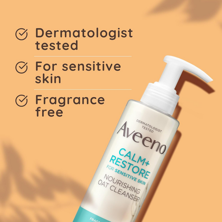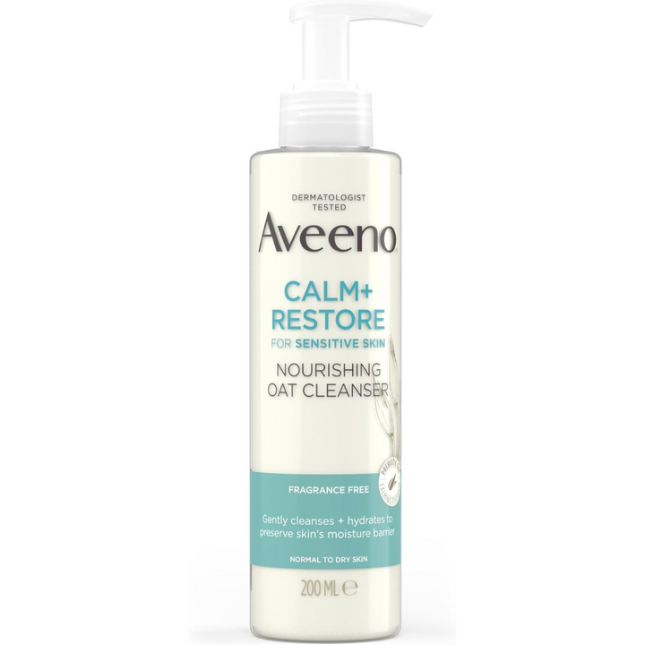 Gently remove dirt, impurities, and oil with the Aveeno Face CALM+RESTORE® Nourishing Oat Cleanser. Formulated for sensitive skin, the non-foaming, creamy formula gently cleanses, leaving skin feeling soothed and hydrated.