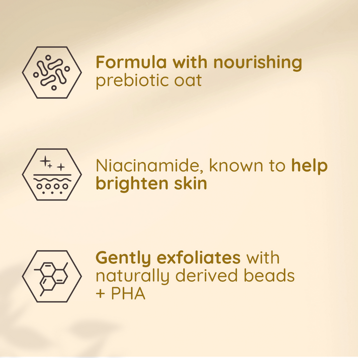Aveeno Skin Renewal Gentle Body Scrub is a must-have for anyone with dry, rough, and bumpy sensitive skin looking for touchably soft, smooth skin in just one week! This scrub contains prebiotic oat as well as naturally derived PHA & beads which gently but effectively exfoliate the skin & Niacinamide known for its brightening properties.