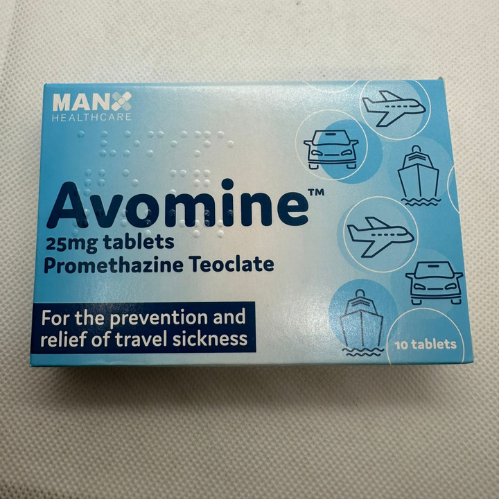 Avomine Tablets 25mg, 10 TabletsAvomine Tablets 25mg contains the active ingredient Promethazine theoclate, which is an antihistamine mostly used for preventing travel sickness and nausea. It can also be used in the treatment and prevention of: