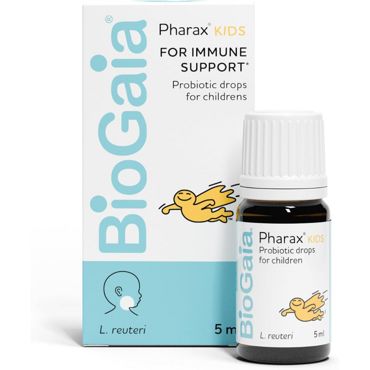 PROBIOTIC DROPS FOR CHILDREN WITH VITAMIN D: Support your child’s throat and immune system with BioGaia Pharax Kids probiotic drops with vitamin D. Proven safe and effective from age 3+, it’s the perfect dose of lactobacillus reuteri in every tablet plus an immune boosting dose of Vitamin D.