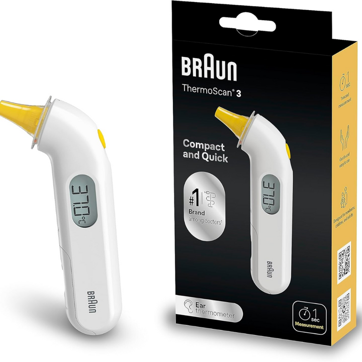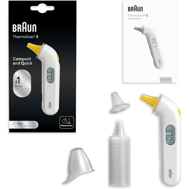 FAST RESULTS – Get accurate results in 1 second with the Braun ThermoScan 3 Digital Temperature Thermometer. This compact ear thermometer for adults and kids features a unique tip for ultimate comfort.