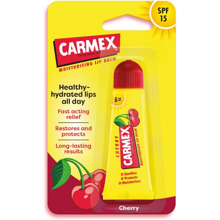 Package Contents: Each box contains one 10g tube of Carmex SPF 15 Cherry Lip Balm, your new go-to for the best lip care.