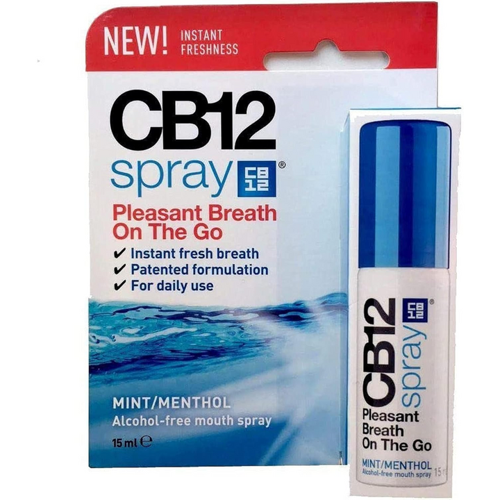 CB12 Spray instantly freshens your mouth and gives you pleasant breath on the go. The patented formula neutralises odorous volatile sulphur compounds in your mouth that cause bad breath every day. CB12 Spray is the perfect supplement to CB12 mouthwash for a dose of instant refreshment whenever you feel like it.