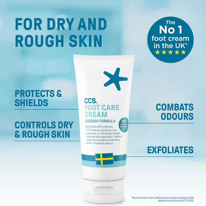CCS Foot Care Cream is extremely effective in the control of dry and rough skin on your feet. The professionally inspired Swedish formula softens hard, dry skin - helping to keep it soft and supple - which prevents further problems from developing.