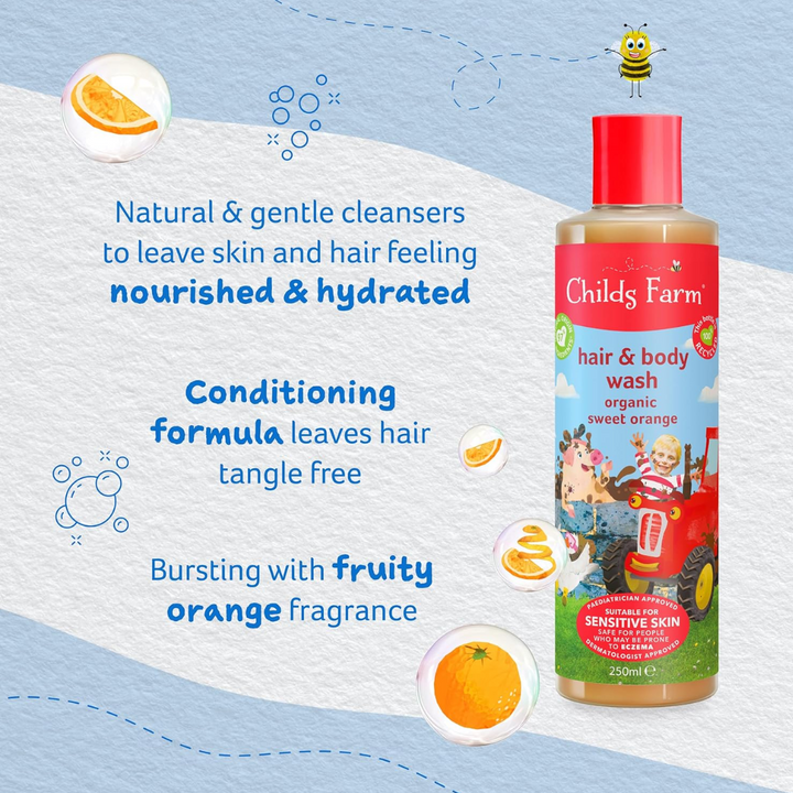 Shampoo and body wash all in one handy bottle, bursting with zesty sweet orange fragrance
