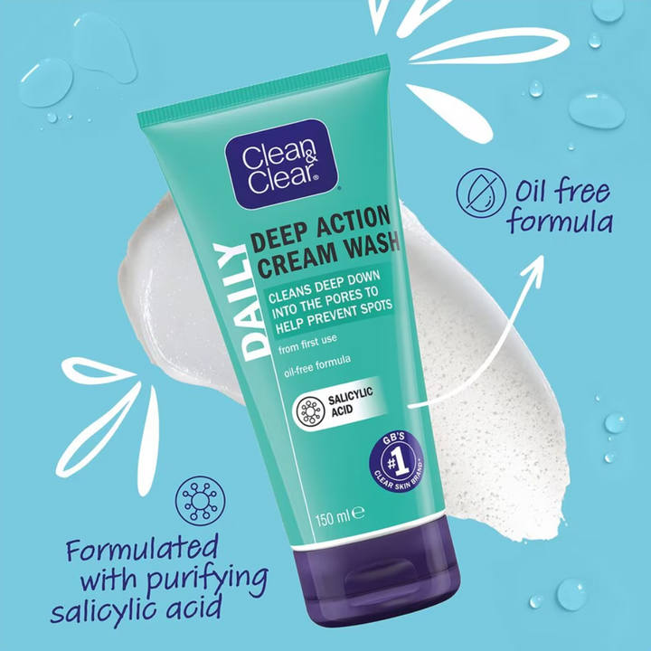 CLEAN & CLEAR® deep action cream wash works deep down to help prevent spots and breakouts. It cleanses deep into the pores to remove layers of dirt, oil and make-up in one easy step, all without over-drying your skin!