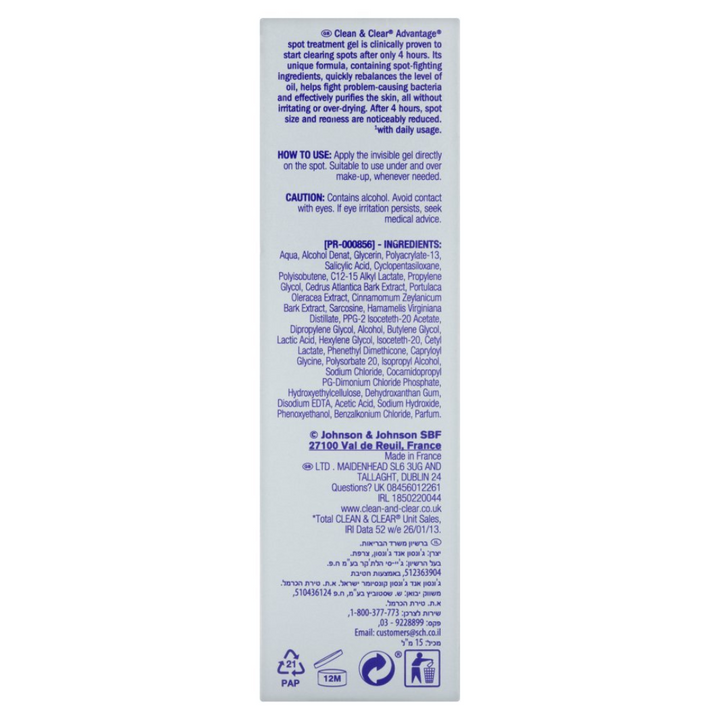 Squeeze a little bit of the clear gel onto your finger and apply it directly to the spot. Use wherever needed. It’s great to use under or over make-up.