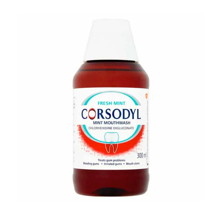 The active ingredient of Corsodyl Mouthwash is chlorhexidine digluconate which is an antibacterial agent that reduces the formation of dental plaque and is used to: