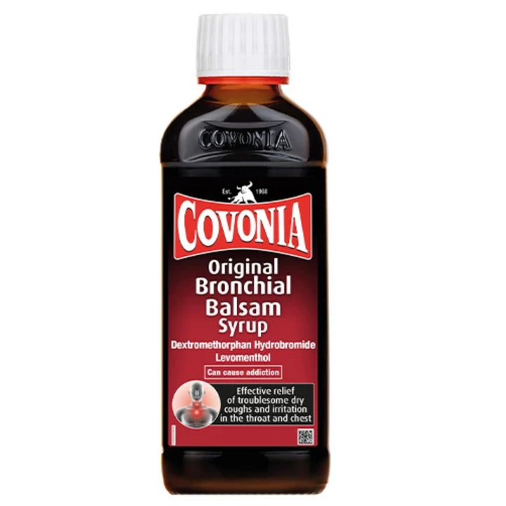 Covonia Original Bronchial Balsam is for relief of the symptoms of dry coughs from cold and bronchitis.