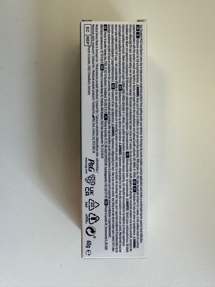 2. For best results apply dots of the adhesive at intervals along edges and surfaces of the denture which come into contact with your mouth.