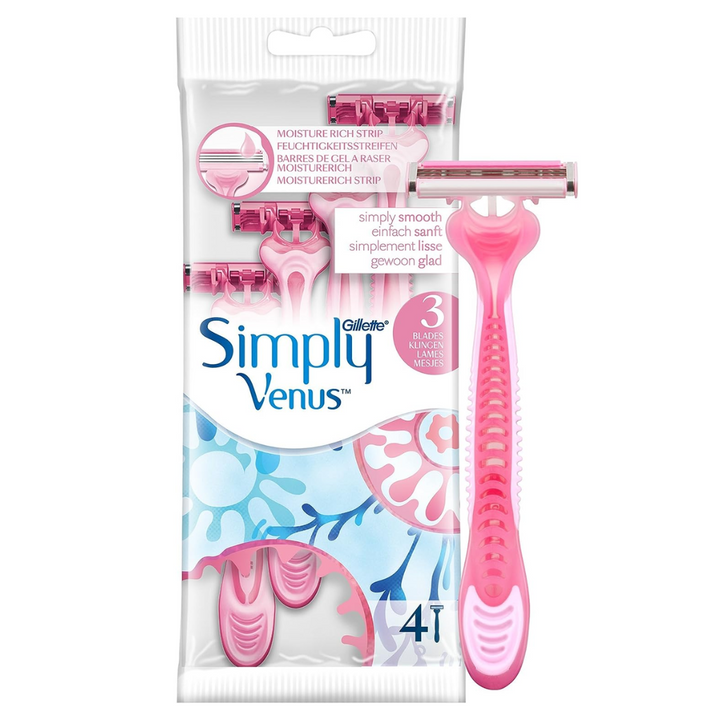 Gillette Venus Simply 3 Women's disposable razors provide a close shave at an amazing value. They feature a 3-bladed pivoting head for hard-to-shave areas with a Lubrastrip for glide. Enjoy a close shave with more comfort (vs. Venus Simply 2).