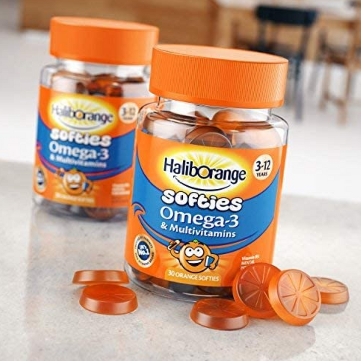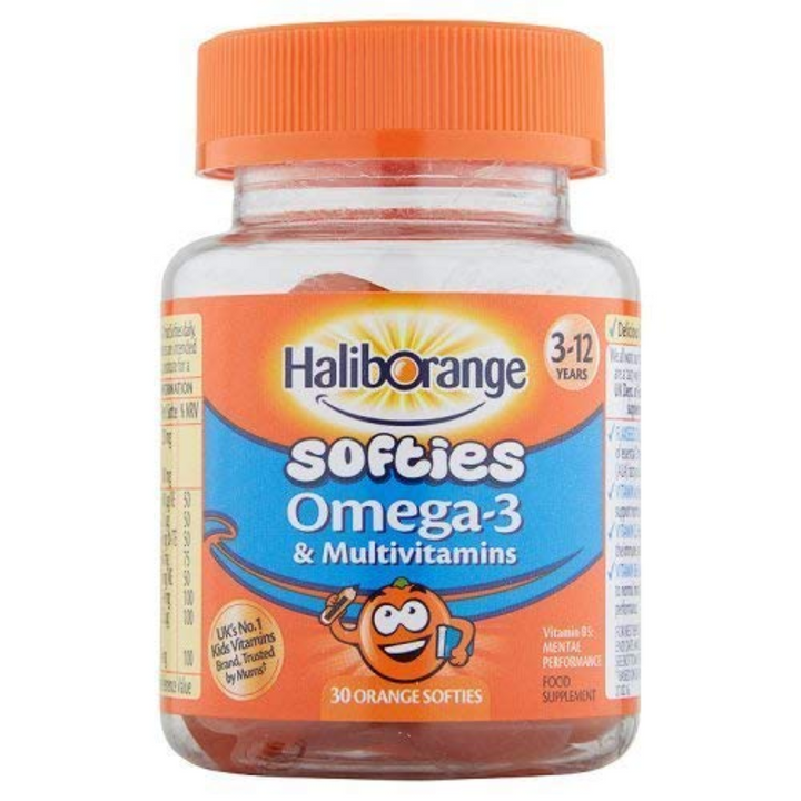 Haliborange Omega-3 & Multivitamins Softies contain 8 essential vitamins and are a delicious orange flavour.