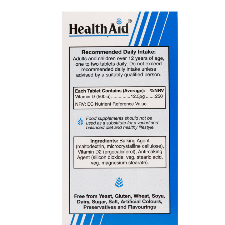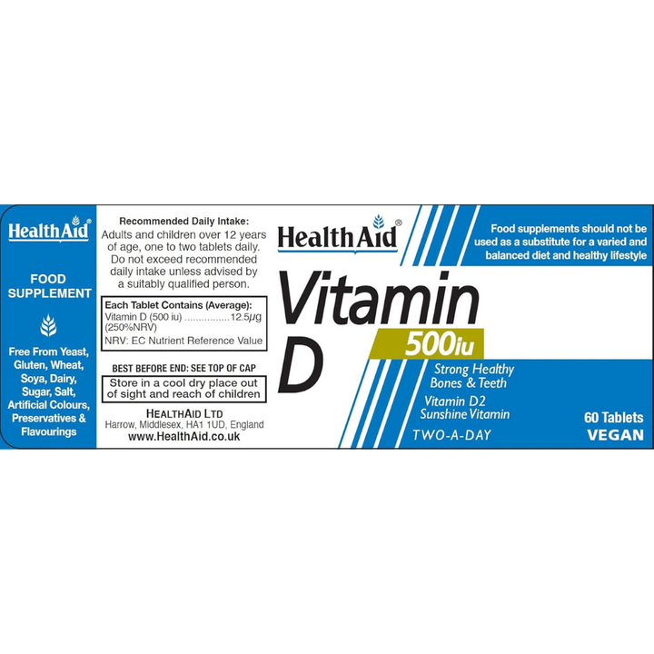 HealthAid Vitamin D 500iU Tablets are Specially formulated using the finest Quality raw materials for maximum potency and benefit.