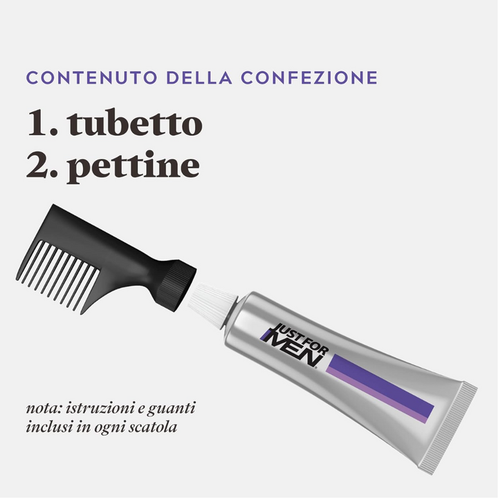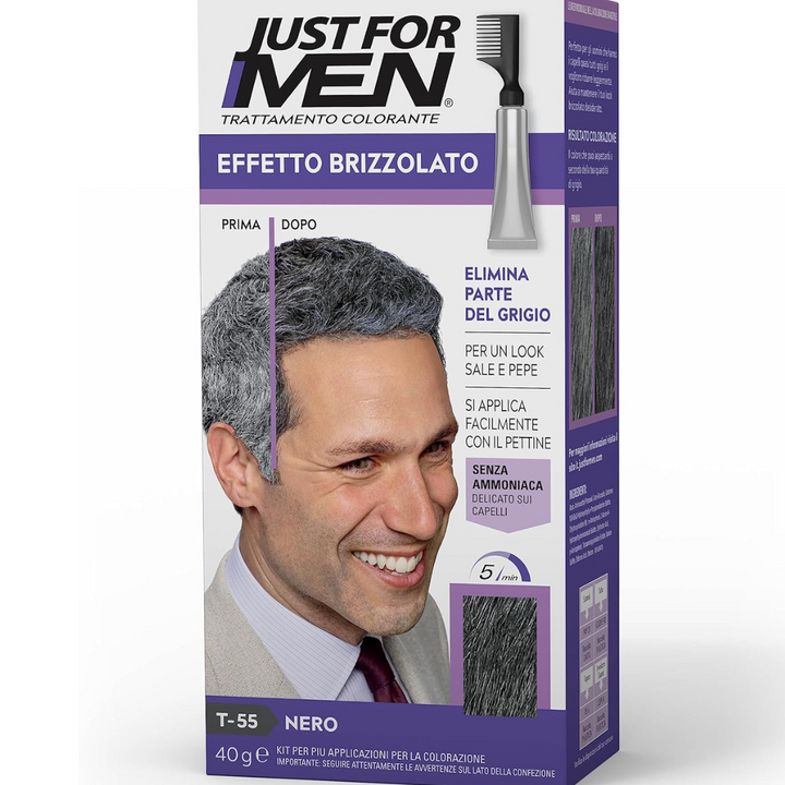 Just for Men Touch of Grey lets you keep some grey and works gradually to give you the perfect look: a little grey to show your experience, but not so much that it hides your vitality. It's great for men who want to look their best, but don't want to get rid of all their grey. Just for Men Touch of Grey is the first men's no-mix, no-mess system leaving you with a little grey but covering the rest. Application is as easy as combing your hair. It takes 5 minutes, with zero mess. With each application, you control how much grey goes. No ammonia, no peroxide. yet the natural look lasts up to 6 long weeks. This box contains one application.