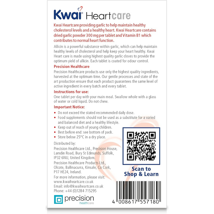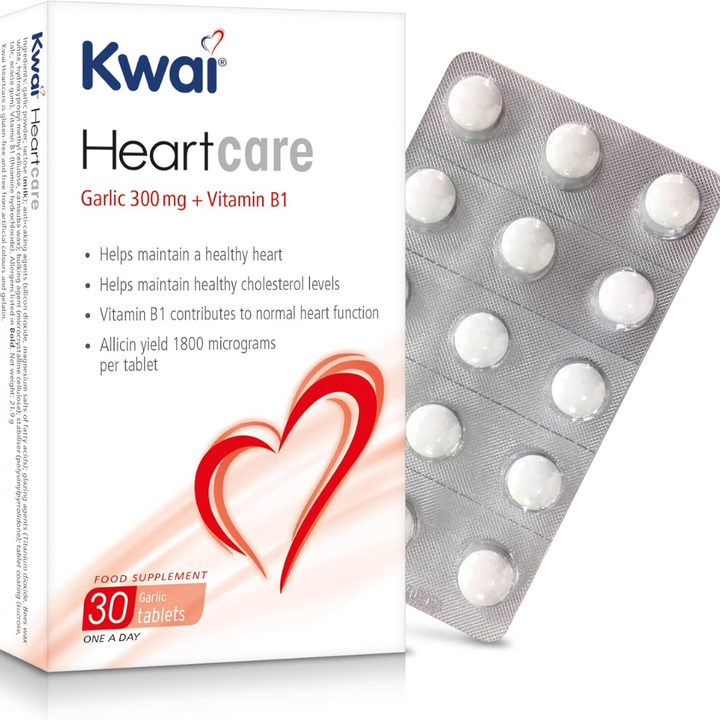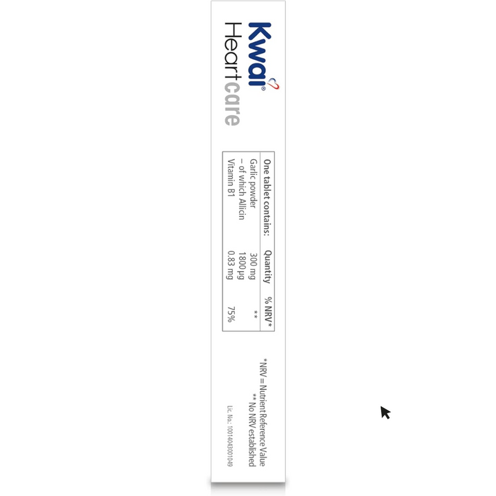 Kwai One-A-Day odour free highly concentrated garlic tablets which contain vitamin B1 and 300mg of garlic to help maintain healthy levels of cholesterol and help keep your heart healthy. Each tablet is coated for odour control.