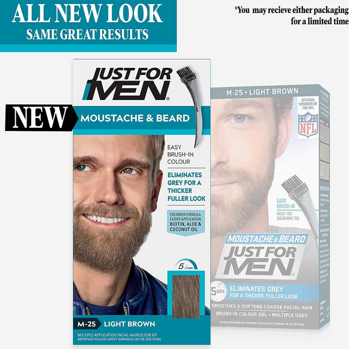 JUST FOR MEN is an easy application brush-in gel specially designed to penetrate coarse facial hair. Lasting until the grey grows back, every shade matches the same JUST FOR MEN hair colour. Plus, you get multiple applications from one carton.